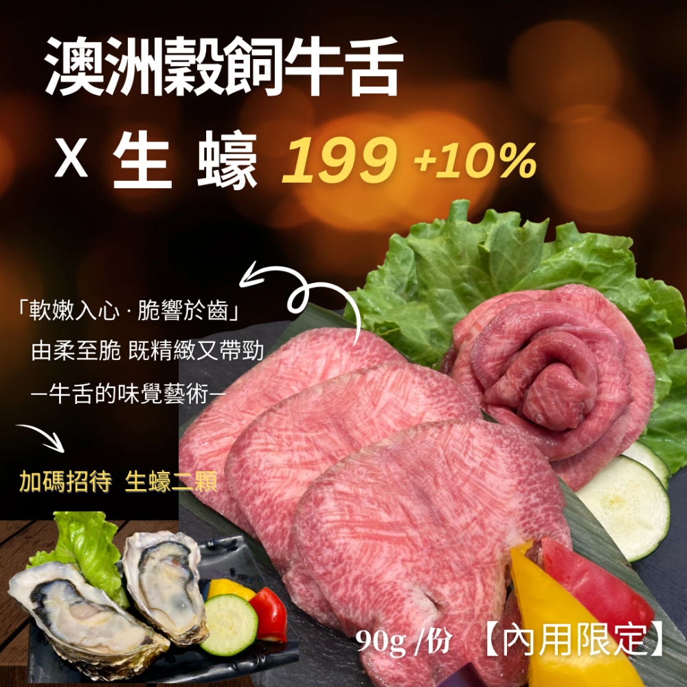 ✨【舌尖饗宴|澳洲穀飼牛舌】✨ 老饕加價購一199+10% 軟嫩中帶脆,口感層次豐富。🥂好康再加碼 生蠔🦪兩顆